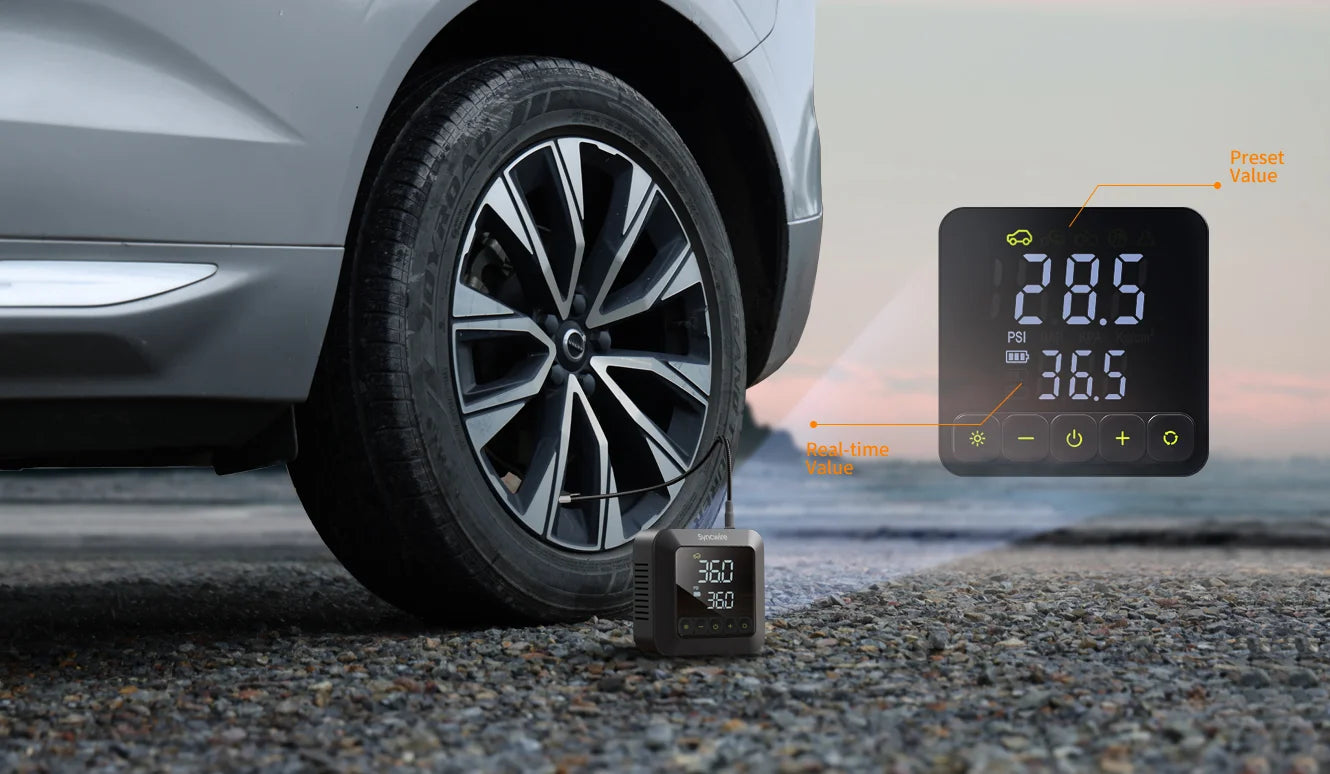 Il gonfiatore per pneumatici Syncwire può raggiungere una pressione massima di 150 PSI, il che lo rende estremamente efficace per un gonfiaggio rapido.