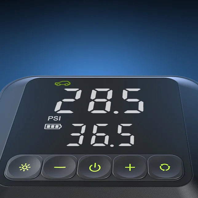 Il gonfiatore per pneumatici è dotato di un sensore ad alta precisione che fornisce letture della pressione accurate entro ±0,5 PSI, garantendo un gonfiaggio preciso.