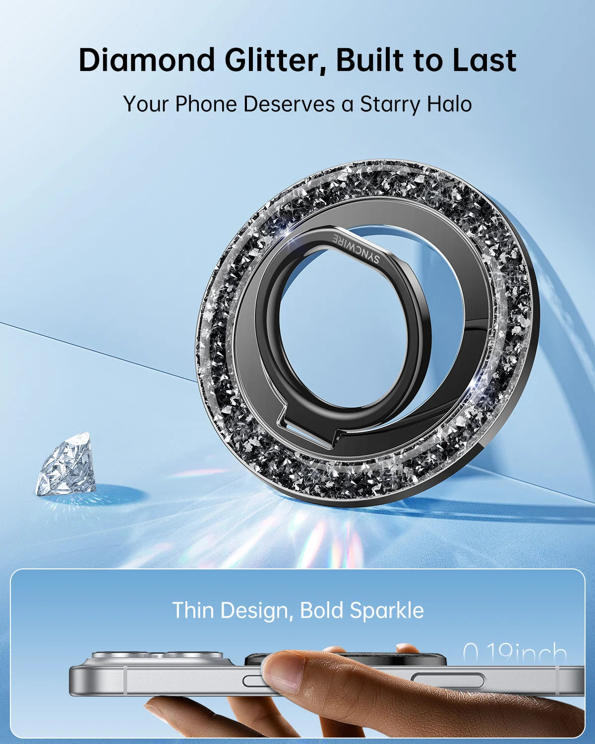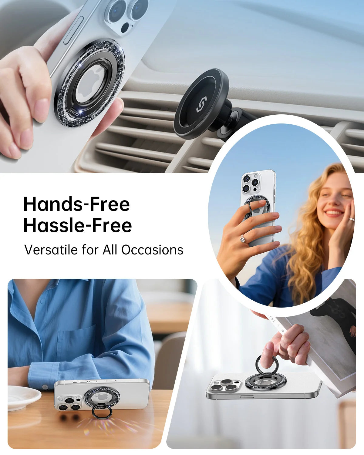 • Impugnatura magnetica glitterata per telefono: Il supporto magnetico ad anello per telefono Syncwire Glitter è la combinazione perfetta tra stile e funzionalità. Realizzato con un design magnetico, si aggancia perfettamente alle custodie compatibili con MagSafe, garantendo che il telefono rimanga saldamente in mano. La finitura glitterata è accattivante e aggiunge un tocco di lusso all'uso quotidiano del dispositivo. È un ottimo regalo per tua moglie, tua figlia, tua madre, tua zia, la tua famiglia, la tua fidanzata, i tuoi amici o per te stesso.