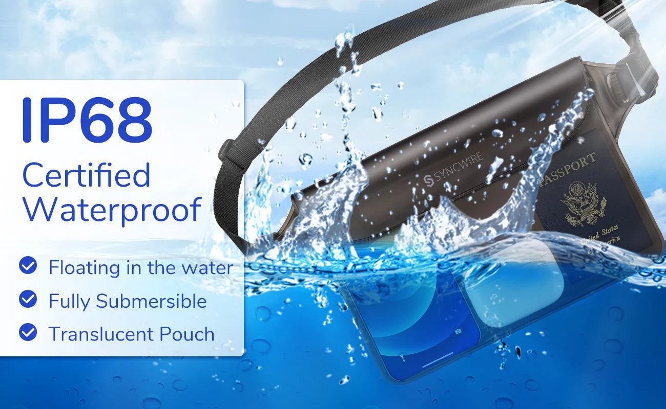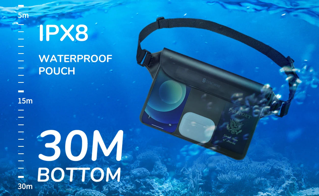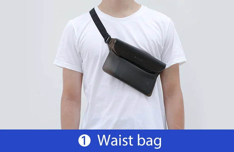 - Cosa ottieni: 1 marsupio impermeabile Syncwire nero e 1 marsupio impermeabile Syncwire bianco. Ti accompagneranno durante una piacevole gita in spiaggia.